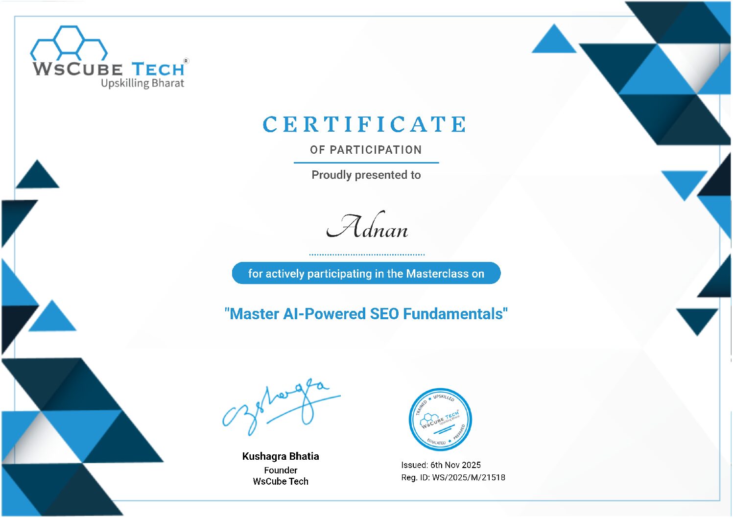 My name is Adnan Ali, a BS IT Graduate from Virtual University, and an SEO Specialist & Website Developer with extensive experience on Fiverr, Upwork, and direct client projects. I help businesses and agencies increase organic traffic, improve search rankings, and boost online conversions through data-driven and AI-powered SEO strategies.