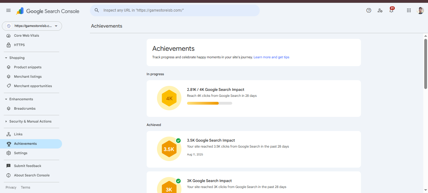 For Game Store ISB, I created and managed monthly SEO reports covering keyword performance, traffic growth, and optimization insights. The focus was on improving search rankings through on-page SEO, technical audits, and local visibility in Islamabad’s gaming market.